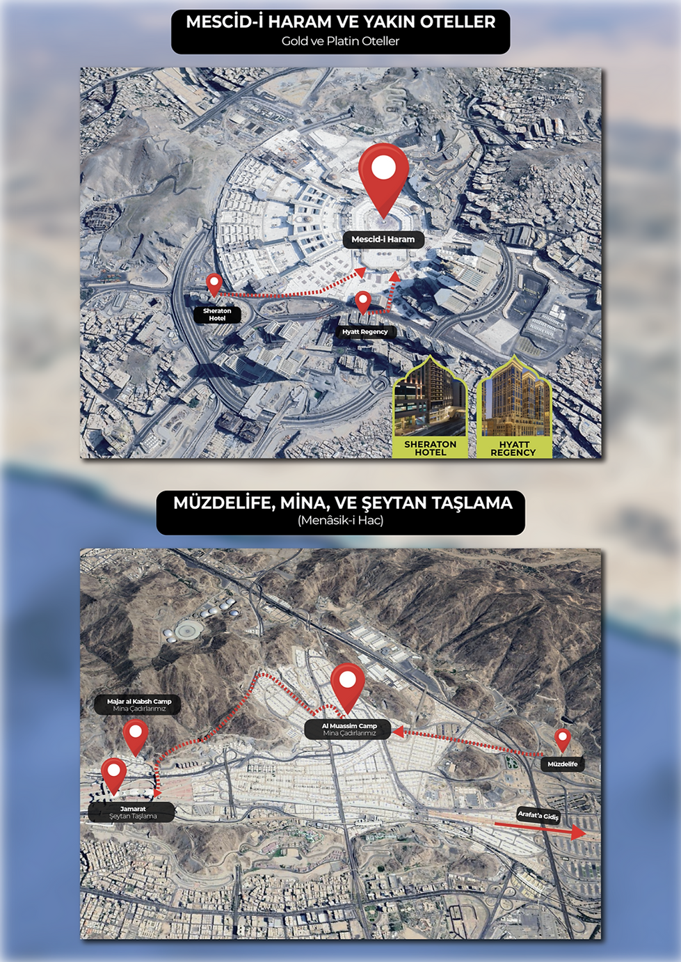 Hacıların farklı konaklama yerlerini karşılaştırabilmelerini ve Mescid-i Haram ve Kutsal Meşher alanlarına yakınlıklarını değerlendirebilmelerini sağlamak için Mekke, her biri farklı hacıların tercihlerine hitap edecek şekilde benzersiz özelliklere sahip farklı bölgelere ayrılmıştır.